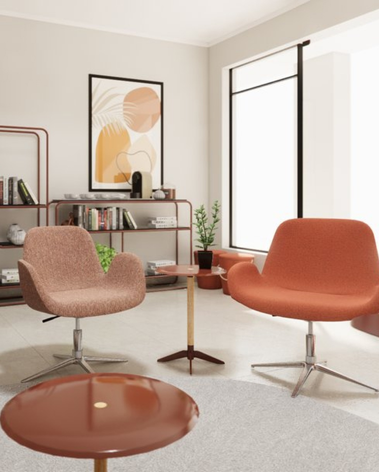 Con su forma envolvente, el Sillón Flow delinea los espacios con suavidad y fluidez, adaptándose perfectamente a ambientes corporativos o residenciales. Su diseño atractivo, elegante y versátil complementa una variedad de entornos, al igual que el resto de la línea, desde oficinas ejecutivas hasta salas de reuniones informales. En un entorno colaborativo, su comodidad y flexibilidad facilitan los momentos de interacción entre personas e ideas.Cuerpo compuesto por estructura de acero y espuma inyectada moldeada de alta densidad y resiliencia, con aplicación de revestimiento a definir con costuras para resaltar curvas y acabado.Mecanismo oscilante, proporciona un ligero equilibrio y permite el ajuste de la altura del asiento.Rueda de doble giro negra, con banda de rodadura en pu, indicada para pisos fríos o que requieren protecciónBase con diseño piramidal en aluminio con doble rueda giratoria antirrayas.Rueda con carril de pu, antirrayas y apta para suelos fríos.Ruedas de nailon con carril de pu, antirrayas, ideales para suelos fríos o que necesitan protección.