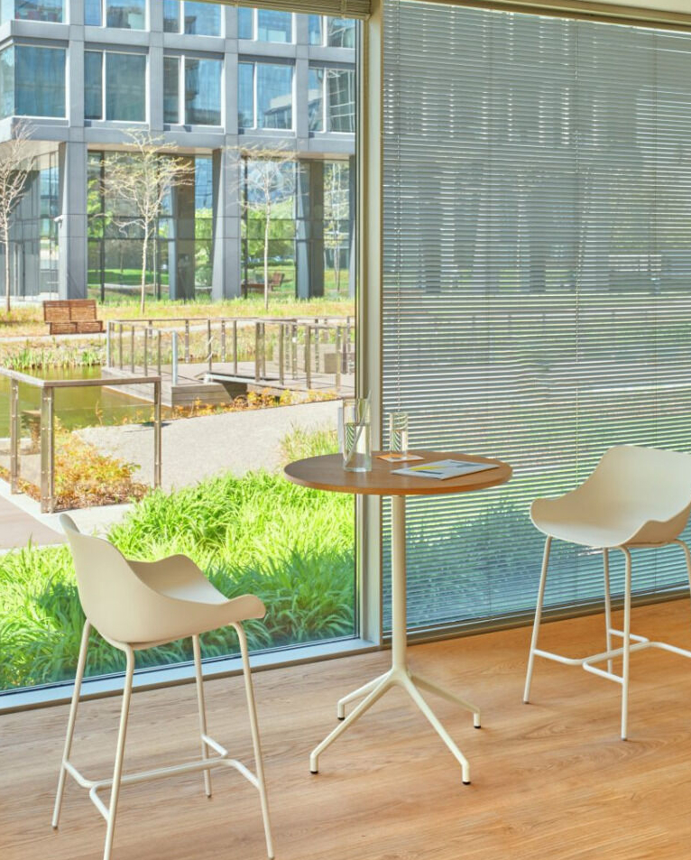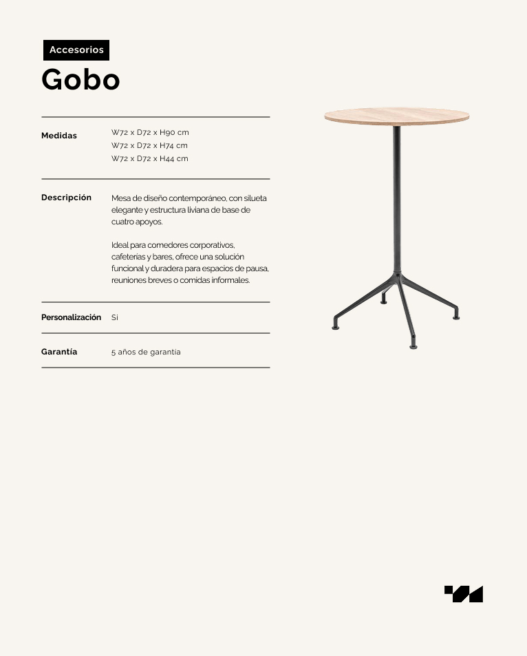 Mesa de diseño contemporáneo, con silueta elegante y estructura liviana de base de cuatro apoyos. Ideal para comedores corporativos, cafeterías y bares, ofrece una solución funcional y duradera para espacios de pausa, reuniones breves o comidas informales.