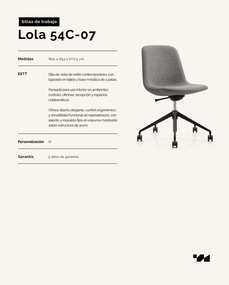 Silla de visita de estilo contemporáneo, con tapizado en tejido y base metálica de 4 patas. Pensada para uso interior en ambientes contract, oficinas, recepción y espacios colaborativos. Ofrece diseño elegante, confort ergonómico y versatilidad funcional sin reposabrazos, con asiento y respaldo fijos en espuma moldeada sobre estructura de acero.