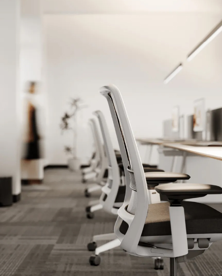 Estética inspirada en la automoción, desde el respaldo hasta la base.