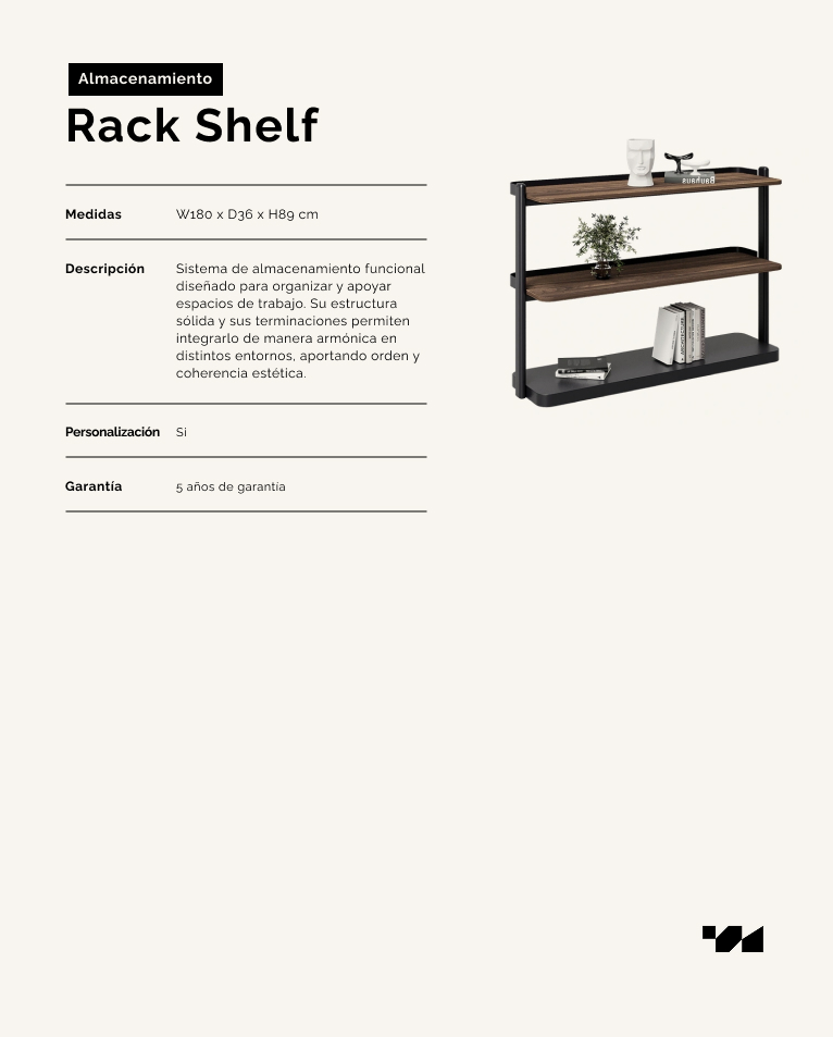Sistema de almacenamiento funcional diseñado para organizar y apoyar espacios de trabajo. Su estructura sólida y sus terminaciones permiten integrarlo de manera armónica en distintos entornos, aportando orden y coherencia estética.