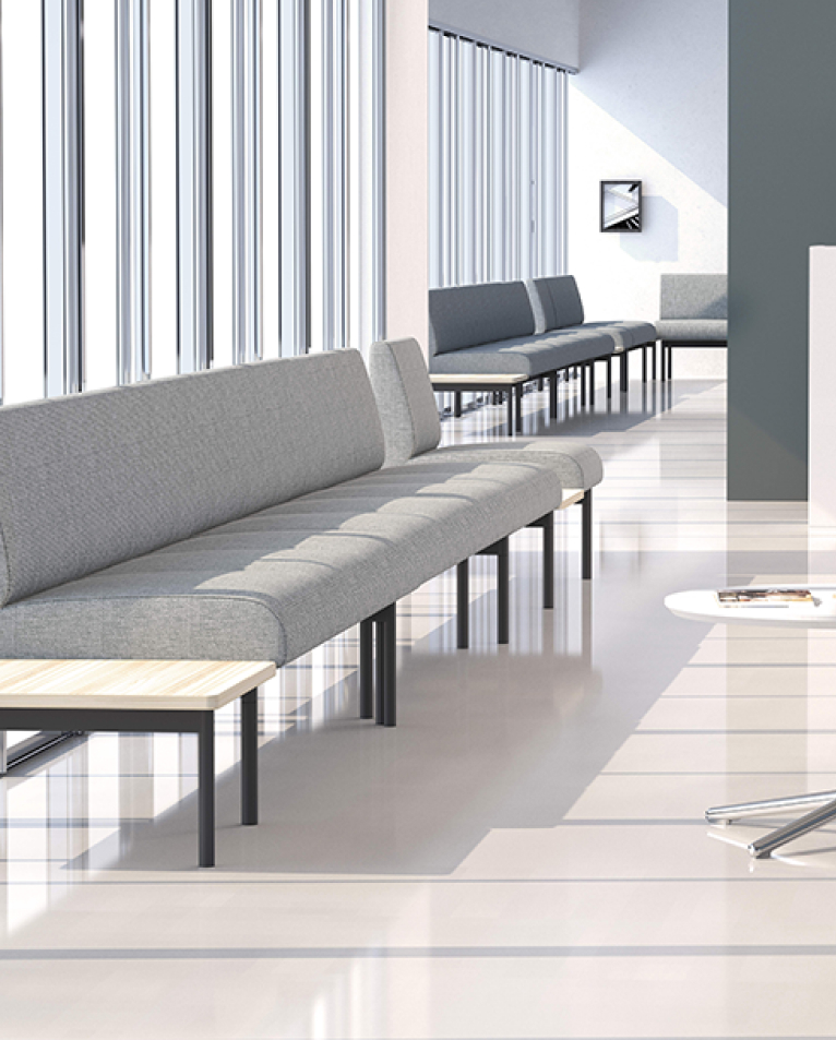 Asiento de tapizado suave y confortable, con respaldo alto y apoyacabezas extendido que proporciona mayor privacidad. Ideal para trabajos de concentración, lectura, alimentación o conversación. Puede combinarse con mesa a juego para crear un espacio funcional que favorece el enfoque y acerca el trabajo al usuario.