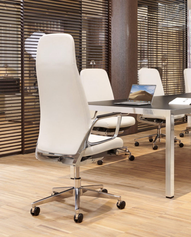 Está diseñada para salas de directorio y oficinas privadas, combinando ingeniería avanzada con una estética atemporal. Ofrece un equilibrio entre presencia formal y ergonomía de alto estándar, asegurando confort, soporte y concentración en entornos ejecutivos.